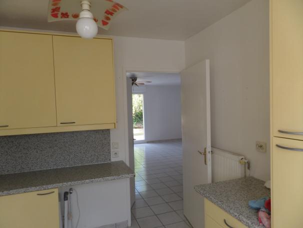 • RDC : entrée, sejour double cuisine, debarras WC. Garage communiquant. Couloir extérieur vers un jardin de 230m² sans vis à vis, terrasse carrelée.
