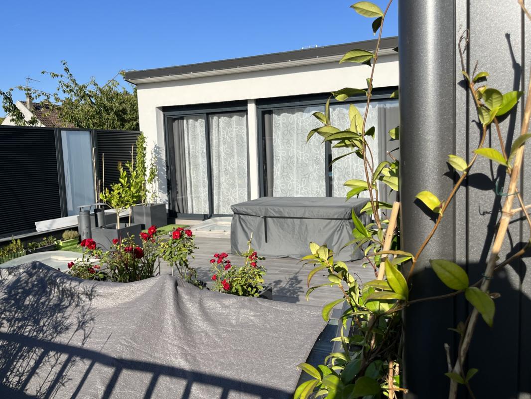 Depuis la rue, une petite façade derrière un portail de plus de 2m de haut sécurisant entièrement la maison, dissimule notre grande maison tout en profondeur, baignée de lumière, grâce à ces nombreux puits de lumière (ouvrables).