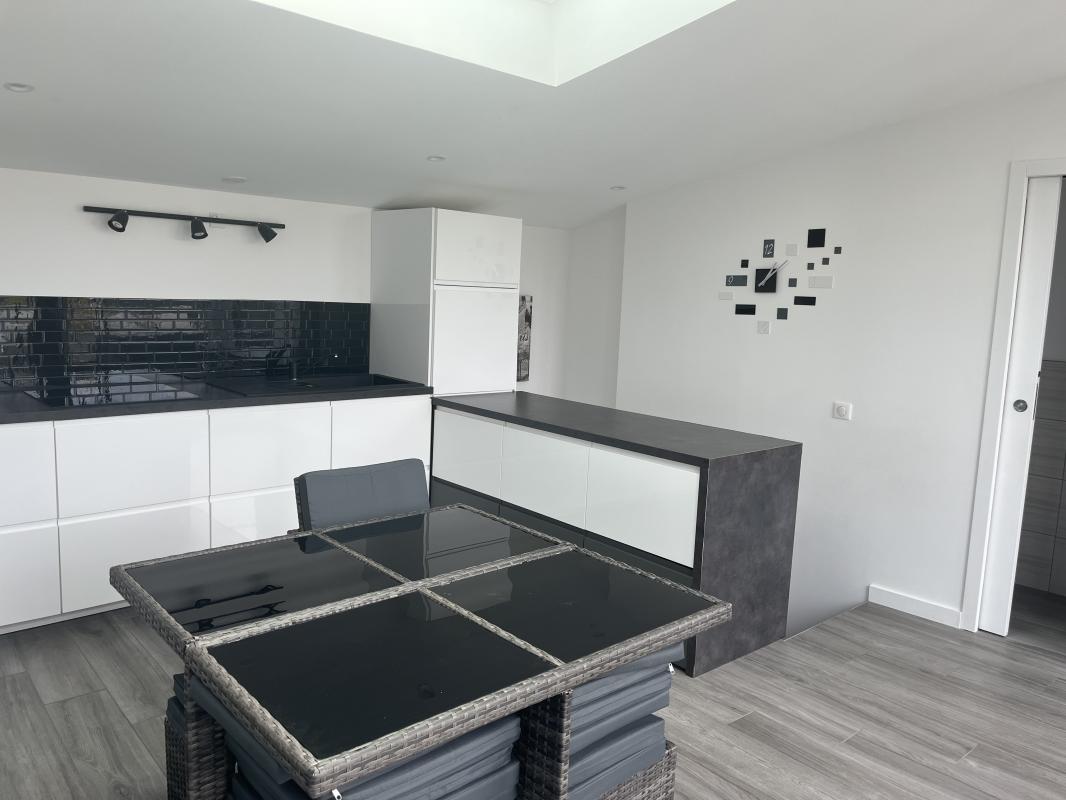 Le rez-de-chaussée s'ouvre sur la pièce à vivre de 42 m² avec cuisine équipée d'un îlot central.