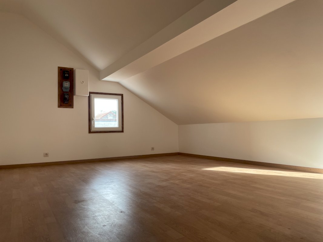 A l’étage : une pièce de vie, un dégagement desservant 3 grandes chambres (18m², 12 et 12 m²) ;
