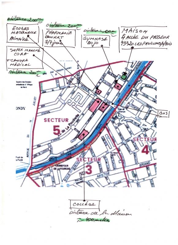Très proche à 100 mètres de : Crèche, école Maternelle, Primaire, 2 Collèges, centre Commercial avec magasin Carrefour, Galerie Marchande, Centre Médical, Pharmacie jours 7/7, Bus.