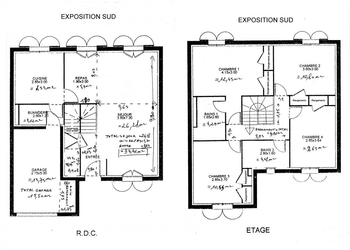 1 grand séjour 35m2, cuisine équipée, 4 chambres (dont une en suite parentale avec douche à l’italienne) avec placards dressing de rangements dans chacune, 2 salles de bains avec WC, 3eme WC avec lave mains indépendant, garage + 1 place de parking.