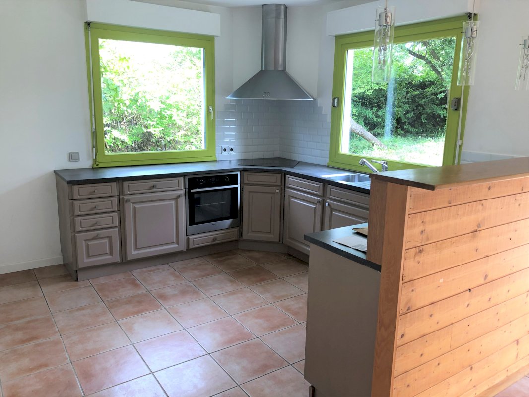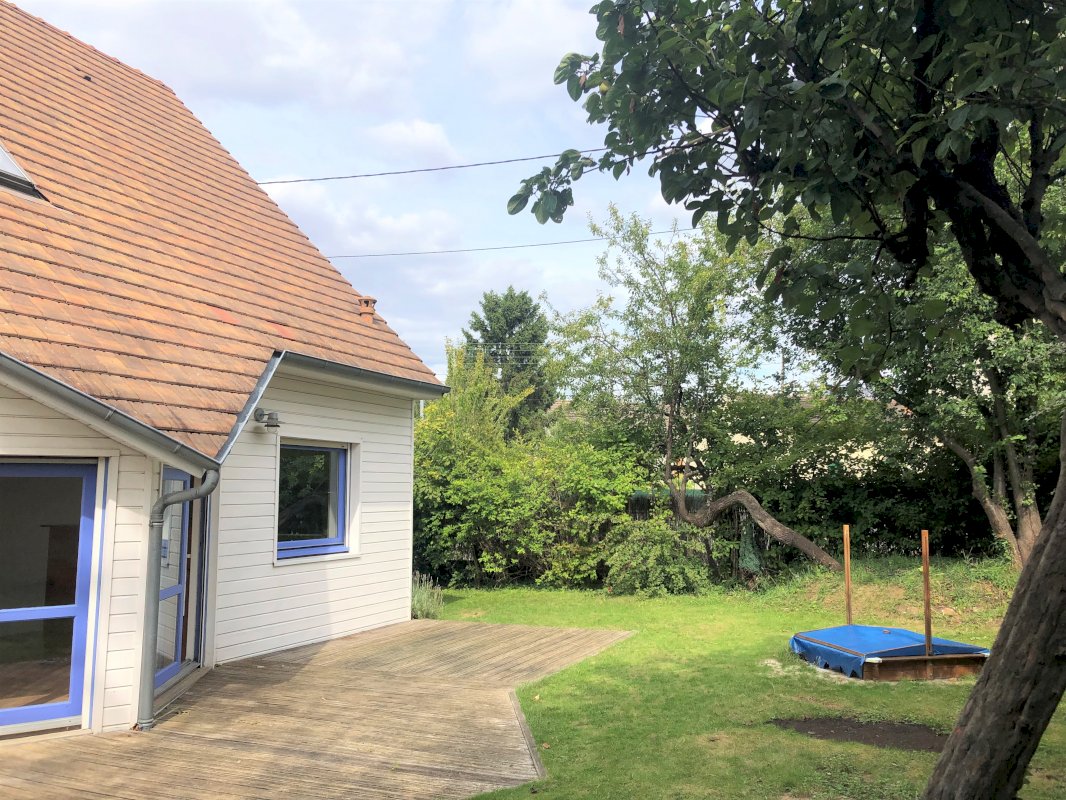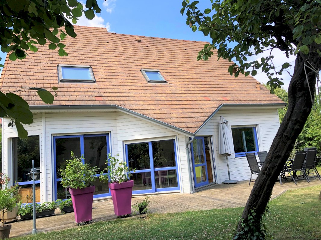 Maison d'architecte de 126 m² (loi carrez) et 156 m² au sol dans un écrin de verdure, ossature bois, non mitoyenne, sans aucuns travaux à prévoir, complétée d’un garage et d’un cabanon.