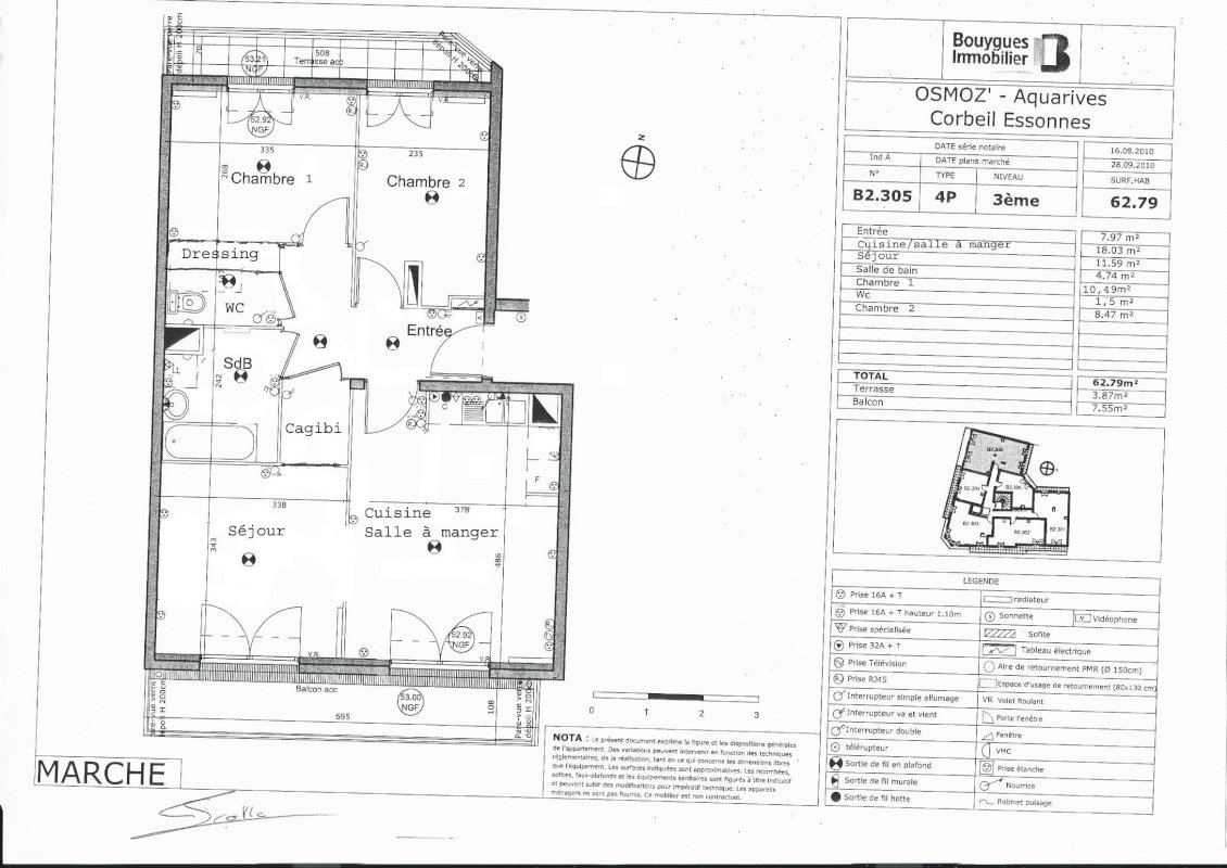 APPARTEMENT CONFORTABLE BIEN ORIENTE , ENSOLEILLE , QUARTIER CALME. PLAN JOINT . ACHETE 180 000 € LE 06/12/2012 A BOUYGUES . PARKING SOUS-SOL SECURISE. ASCENSEUR . SURFACE HABITABLE : 62,79 . CUISINE EQUIPEE . TERRASSE : 3,87 . BALCON 7,55 . TOTAL 74,21 .