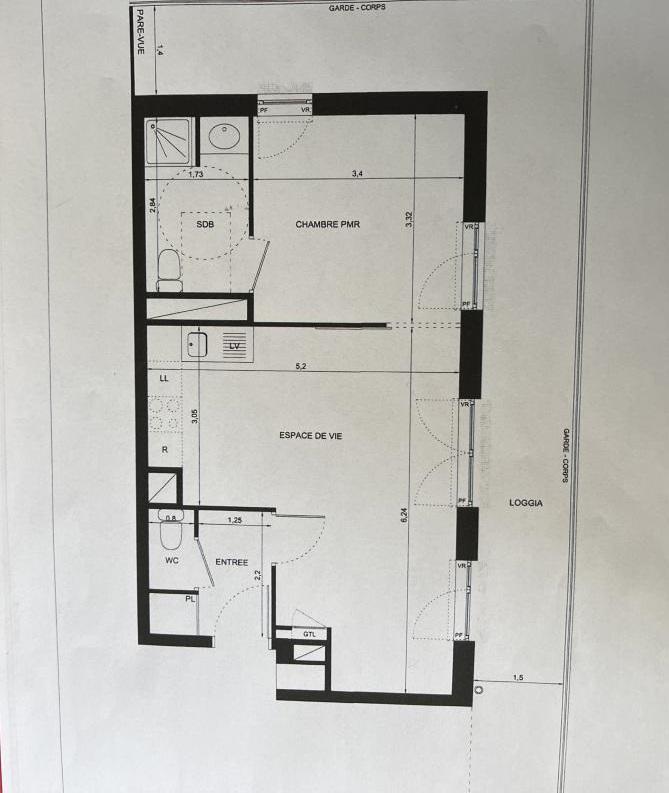 Appartement 2 pièces 46m2 avec balcon filant de 34 m2