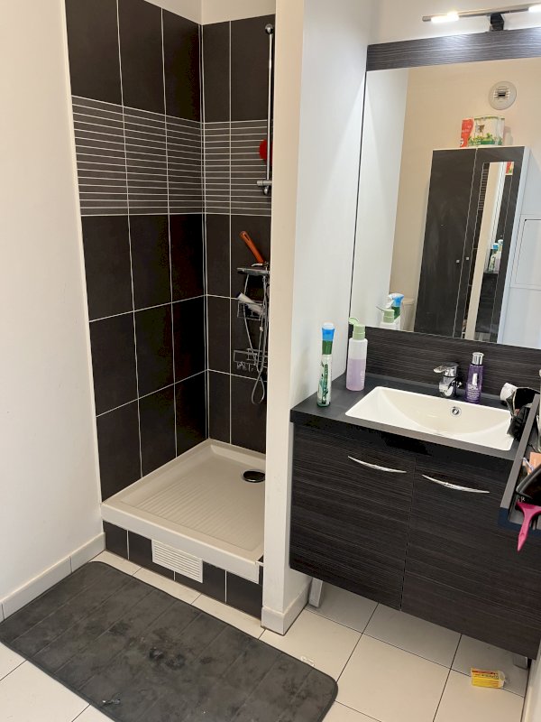 Une chambre et une salle d'eau ( cabine de douche, meuble sous vasque et wc privé).