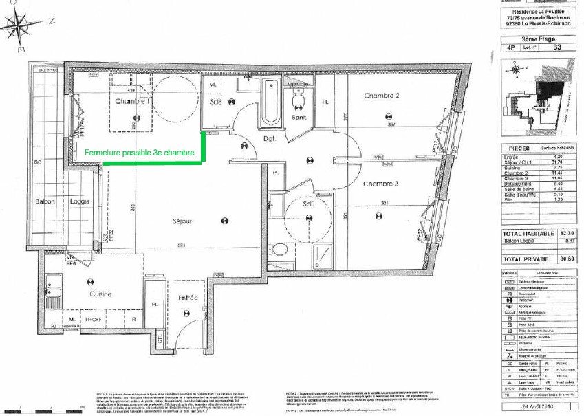 Appartement T4, 82 m² au Plessis Robinson près du RER Robinson
