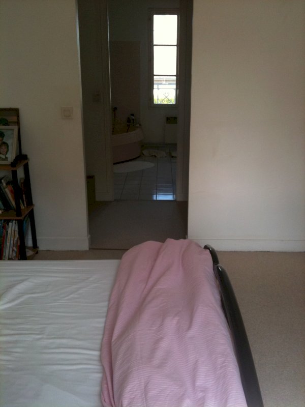 3. A l'étage, partagée sur la mezzanine de 15m² environ et les wc : 3 chambres et salle de bain /baignoire d'un côté, suite parentale (chambre/dressing/ salle de bains : Douche et baignoire ovale) de l'autre côté.
