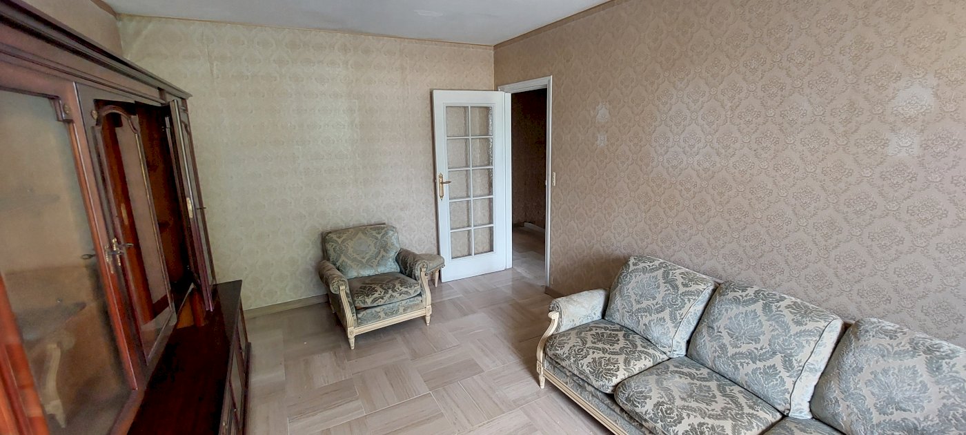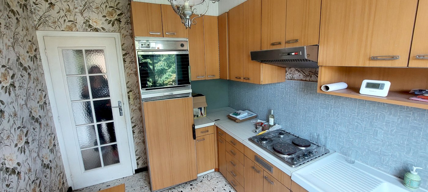 A l'étage, nous trouvons la cuisine indépendante de 9m2 environ, le salon salle à manger de 16m2 environ, la salle de bain, un wc et 2 chambres de 9 et 12m2 environ.