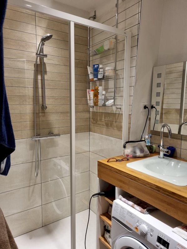 Il se compose d’une cuisine équipée (lave-vaisselle, 4 plaques, réfrigérateur, four combiné neuf, …), d’un séjour sans vis-à-vis avec parquet massif, d’une salle d’eau avec fenêtre et d’une grande chambre avec un grand dressing.