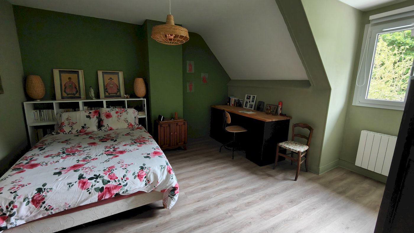 A l’étage un palier dessert 3 chambres dont 2 de 13 m² et 1 de plus de 15 m2, un dressing aménagé de 8 m², une salle de bain de 12 m², WC séparé.