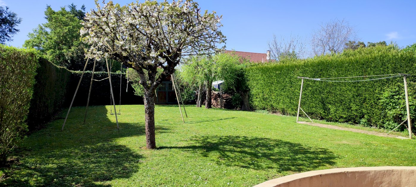 Grand jardin avec barbecue, terrasse, grande balançoire, cabanon, cerisier, mirabellier.