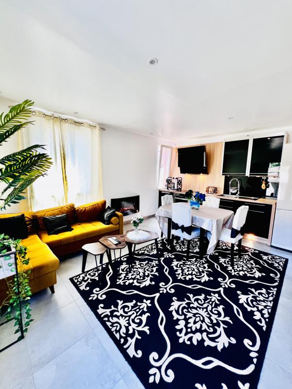 L'une des rues les plus prisées à Clichy sous bois Dans une petite résidence de 8 appartements, située à quelques pas du Raincy,F2 de 50 m² au sol ( et 43 m² Carrez).. Au rez-de-chaussée, accès indépendant à l’immeuble comme dans une maison de ville . Cet appartement exposé pleins Sud offre un espace de vie élégant comprenant un séjour lumineux, une salle à manger conviviale, une cuisine ouverte et entièrement équipée, ainsi qu'un espace nuit comprenant une chambre, une salle de bain, un dressing et un toilette séparé. Des commodités supplémentaires telles qu'une buanderie pratique, deux caves pour le stockage, sont également incluses en extérieur et un jardin avec sa terrasse de 70 m² sans vis-à-vis sur l'immeuble.
