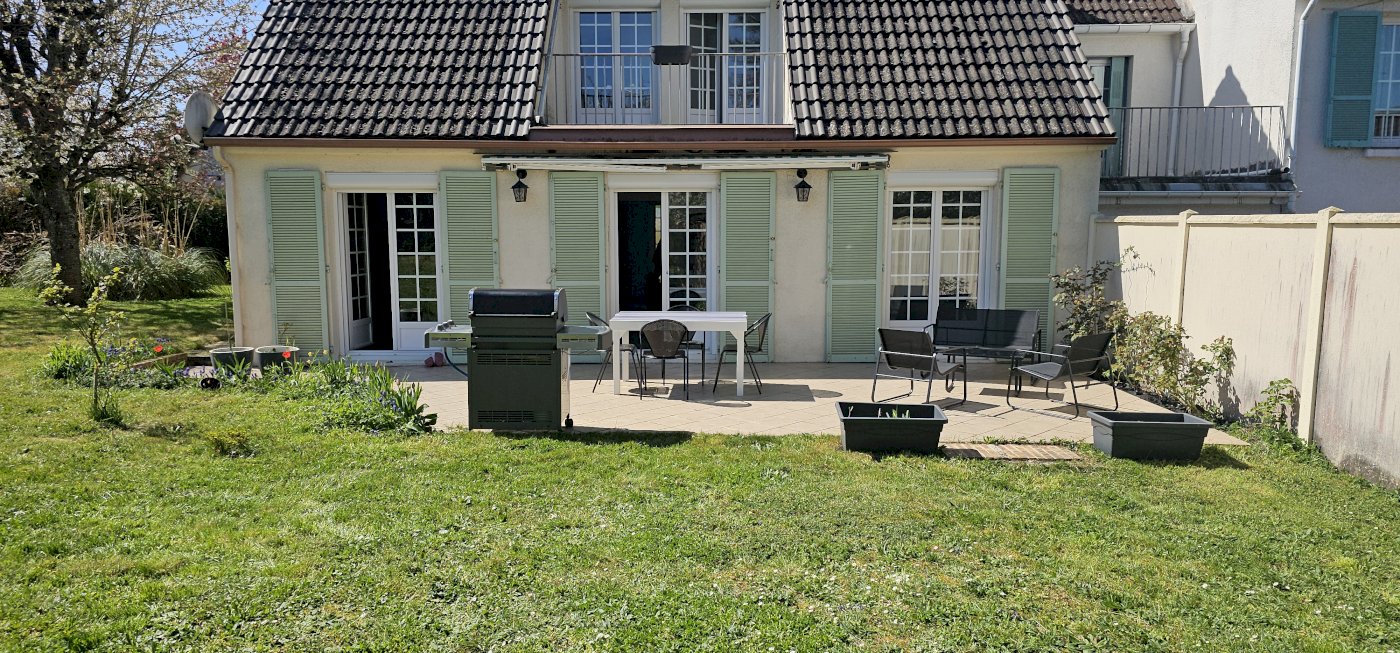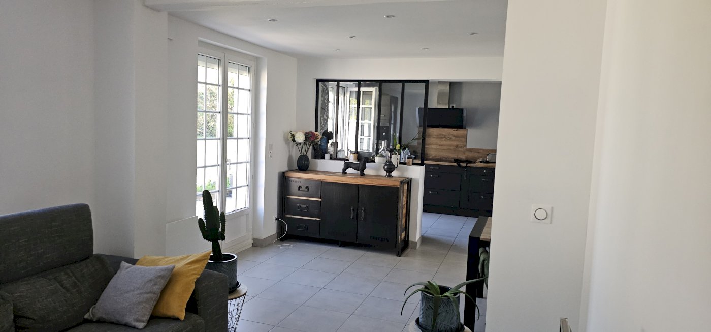 Vend maison avec intérieur entièrement rénové située dans un cadre verdoyant et paisible, espace extérieur arboré avec grande terrasse et store banne.