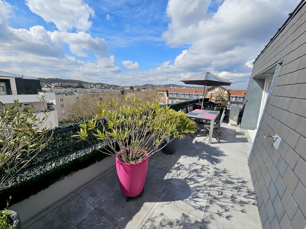 Il est au 5ème et dernier étage, exposition plein sud, avec une grande terrasse de 30m2 et une seconde d’environ 6m2.
