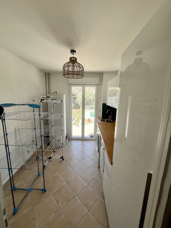 Une suite parentale avec sa salle d'eau privative et un grand placard intégré possède une vue sur la piscine et un accès direct à la terrasse. Des WC suspendus indépendants ainsi qu'une buanderie entièrement aménagée de 7m2 complètent ce niveau.