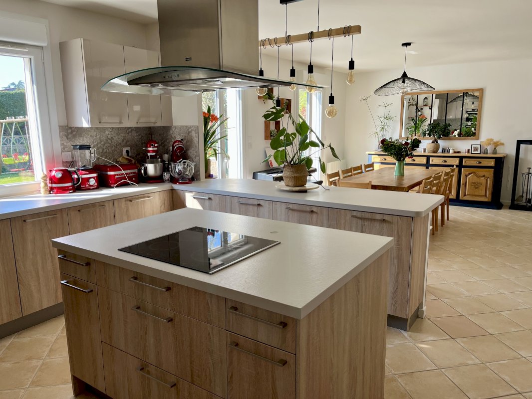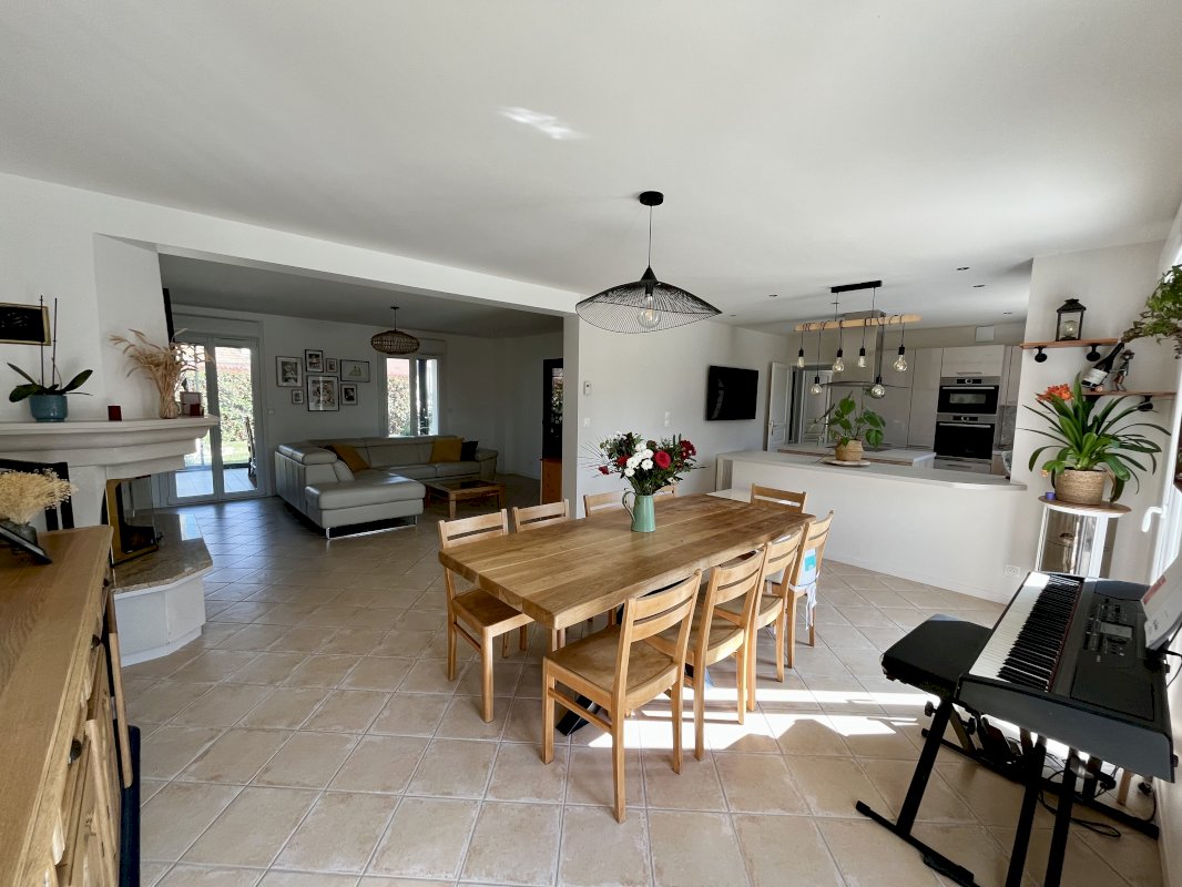 Au rez-de-chaussée, vous trouverez une entrée avec placards intégrés sous l’escalier, une spacieuse pièce de vie traversante de 60m2 comprenant une cuisine ouverte avec ilôt central et plan bar, une salle à manger et un salon avec sa superbe cheminée à foyer fermé. Côté OUEST une terrasse de 50m2 et sa piscine neuve chauffée de 10m2 (sécurisée par bâche à barres + une barrière en verre avec portillon) permettent de profiter pleinement des beaux jours dans le jardin. Une superbe véranda de 16m2 construite en 2024 (sous garantie), chauffée et isolée offre le bonheur d’apprécier le jardin côté EST toute l'année.