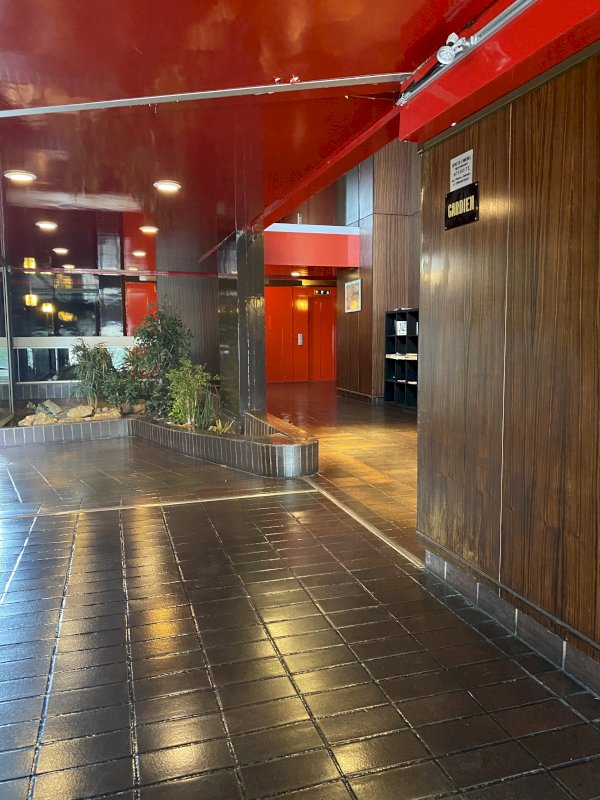 L'appartement est au 11ème étage et dispose d’un interphone. La résidence est dotée de trois ascenseurs qui desservent les 18 étages d'habitation et trois étages de parkings.