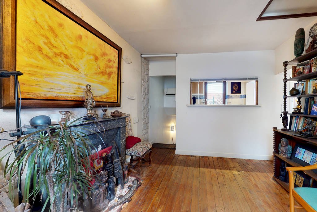 - Au 1er étage : Entrée sur séjour/salle à manger avec cheminée et parquets anciens, accès vers cuisine équipée avec bar ouvert sur séjour, accès terrasse aménagée au calme, exposée est-ouest (possibilité de serre autorisée par mairie), couloir donnant vers bureau professionnel (ou chambre) avec plafond cathédrale par vide mezzanine, salle de bains/wc/buanderie.