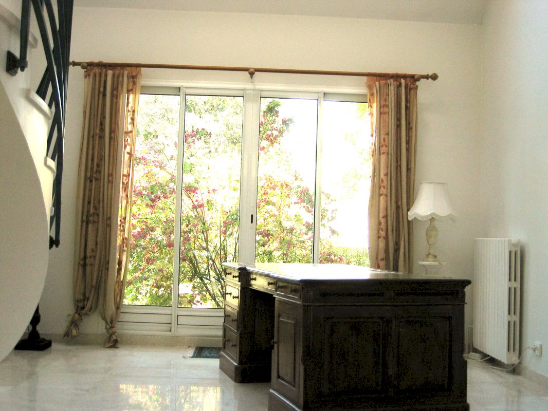 Au rez-de-chaussée, une cuisine dinatoire s’ouvre sur la terrasse grâce à une baie vitrée. Le grand séjour traversant, partiellement cathédrale et carrelé de marbre, bénéficie d’une grande luminosité grâce à deux baies vitrées. Une pièce offrant la possibilité de faire un bureau ou une chambre. Les toilettes avec salle d’eau, une buanderie, un cellier et un vestiaire complètent l’équipement.
