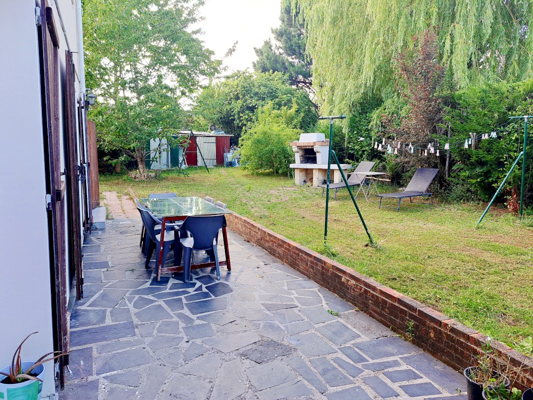 Côté extérieur, laissez-vous séduire par un beau jardin avec son barbecue, 2 petites cabanes et un cerisier.
