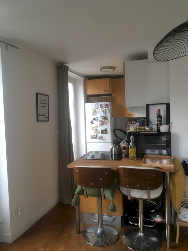 Vends studio au 4eme et dernier étage sans ascenseur avec vue dégagée, double exposition sud et est. Tout équipé, bon état, double-vitrage, combles potentiellement récupérables. Charges 60€/mois. Taxe foncière: 349€/an