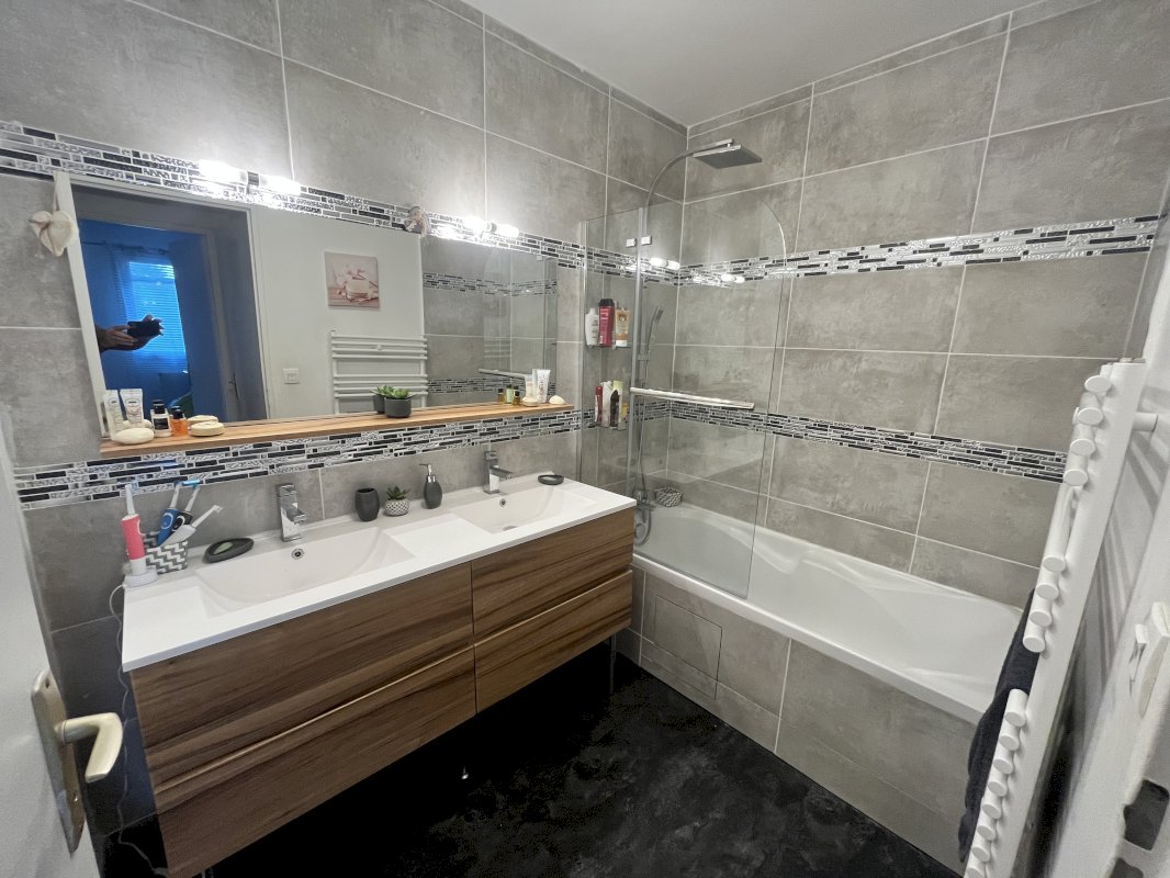 - A l’étage: 4 chambres , dont deux avec rangements intégrés, 1 salle de bain double vasque, 1 salle d’eau et toilette séparée.