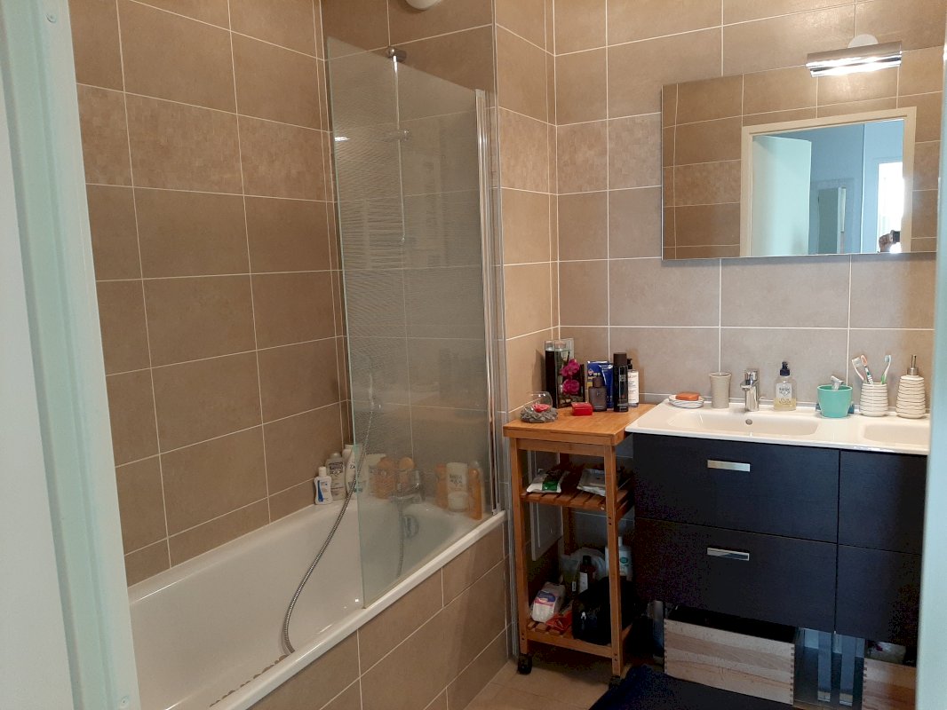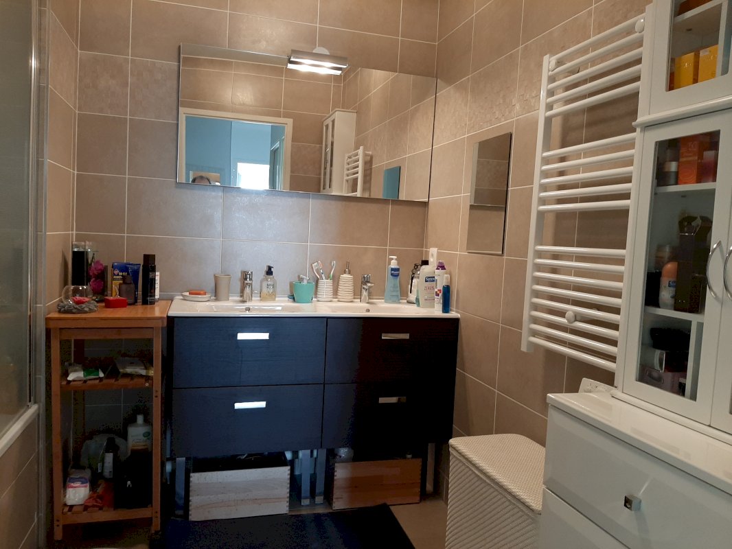 - une salle de bain de 5 m² totalement carrelée équipée de 2 vasques