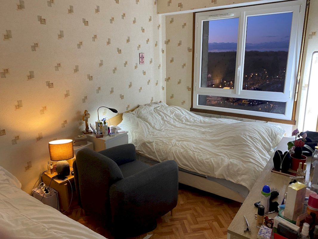 Deux chambres spacieuses avec chacune une grande fenêtre rendant les pièces lumineuses.