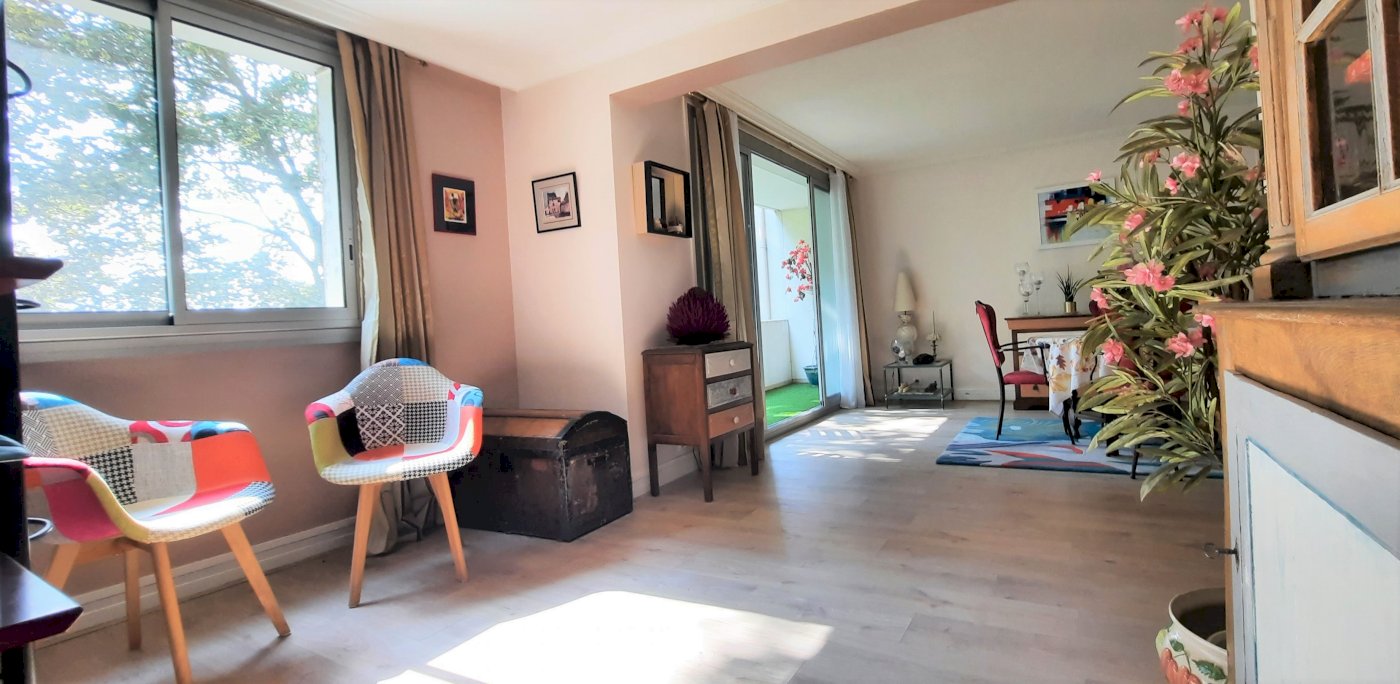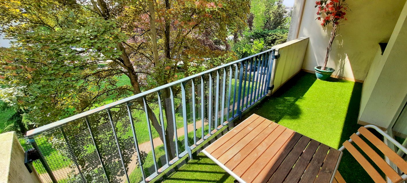 Bel appartement T3 de 64 m2 Carrez avec balcon de 8,62 m² sur parc au Val d'Or Parc de la Bérengère, refait à neuf (plancher, électricité, peintures, moquette) sauf cuisine, exposé ouest, très lumineux, au 3ème étage avec ascenseur comprenant :