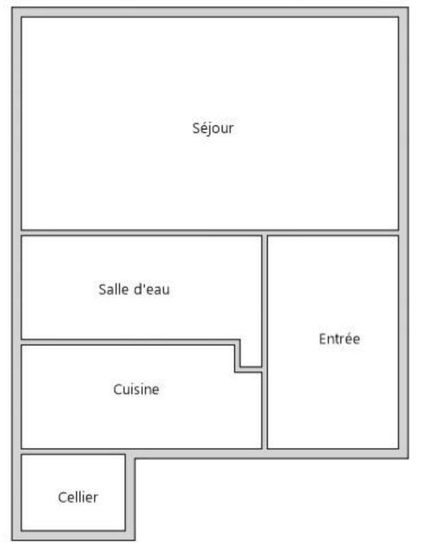 Cet appartement comprend : Une entrée couloir (4,6 m²), une cuisine (6,9 m²), un cellier (1,6 m²), une salle d'eau avec wc (4,61 m²) refait à neuf en 2015 et une pièce à vivre de 22,3 m².