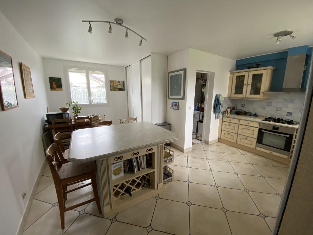 RDC: Salon salle à manger (38,3), cuisine (16,3), suite parentale (14,8) avec douche (6,6), une chambre (11,3), un bureau menant à l'étage (9)