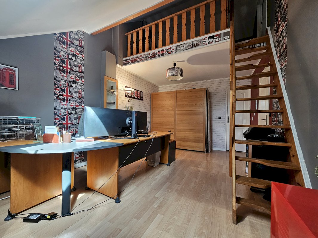 - une grande chambre 4 mansardée avec placard sous velux, une porte donnant accès direct à la salle de bain, un escalier japonnais, menant à une belle mezzanine et à un grand grenier isolé attenant.