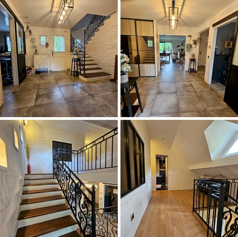 - vaste entrée avec rambarde en fer forgé unique (fabrication artisanale) et placard/dressing 3 portes.