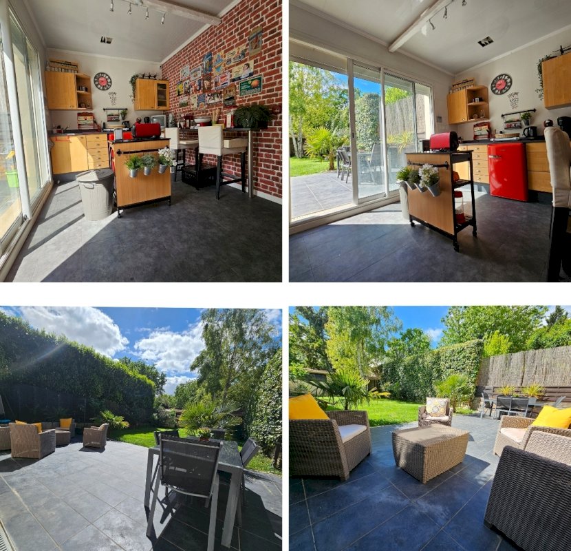 - très chouette cuisine d'été, thème années 50/60 avec un accès direct au jardin par une très large baie vitrée en aluminium (volet roulant motorisé) .. tout à portée de main qd vous êtes dans le jardin (tout reste)