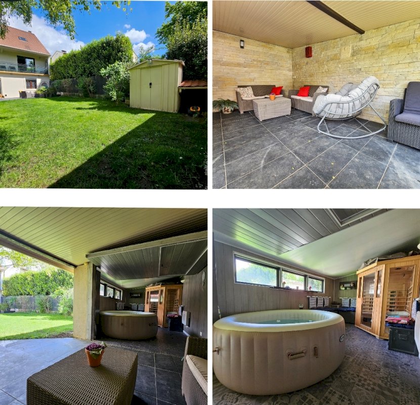 Au fond du jardin petite dépendance "surprise" de 15m2: sauna à infrarouge, jacuzzi avec évacuation menant directement dans un puisard enterré au milieu du jardin (pas besoin de sortir le spa pour le vider), "bancs tiroirs" pour ranger tout le matériel et meuble colonne assorti pour ranger serviettes, maillots de bain etc (tout reste).