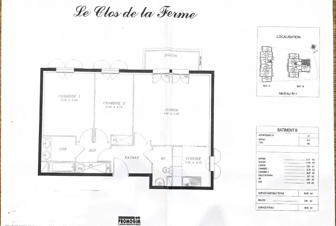 Appartement 3 pièces de 65 m² entièrement rénové, dans secteur recherché, résidence calme et sécurisée du Plessis Pâté (Essonne).