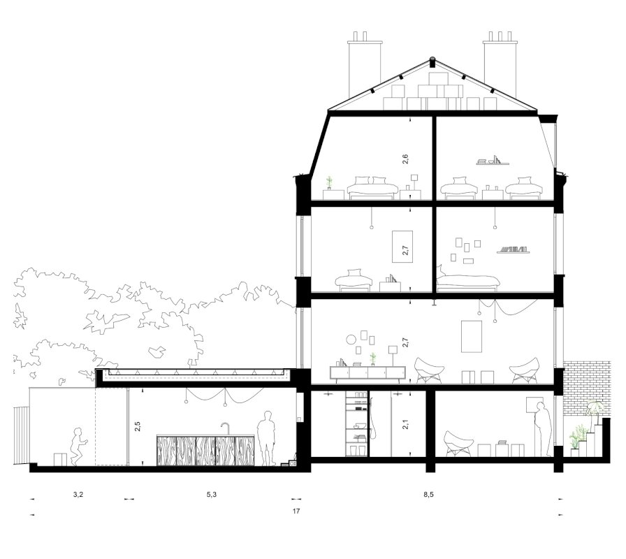 Édifiée à la fin du XIXe siècle sur une parcelle arborée de 400 m², cette maison a été récemment agrandie par une extension moderne et offre aujourd’hui une surface habitable de 195 m², répartie sur quatre niveaux. Sa double exposition nord-est/sud-est, son absence de vis-à-vis et son implantation en retrait de la rue assurent lumière naturelle et tranquillité.