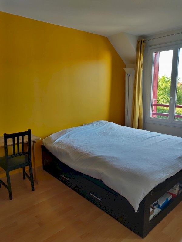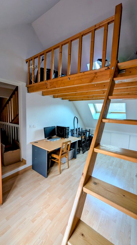 - 2ᵉ étage : Grande chambre, bureau/dressing, salle d’eau avec WC.