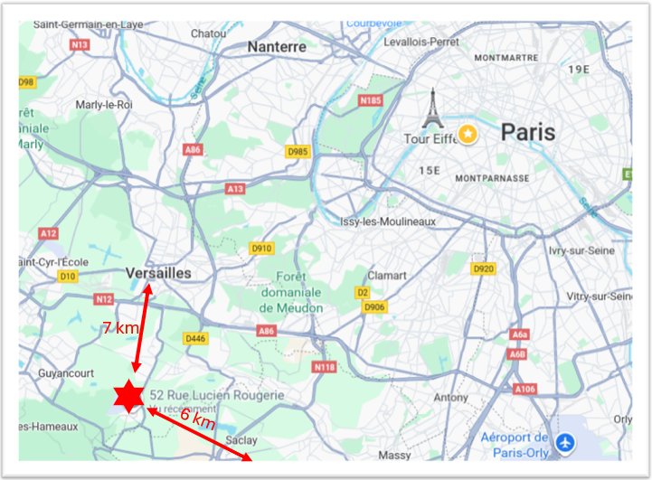 - Situation : Bordure du parc naturel de la vallée de Chevreuse, à 7 km de Versailles et 6 km de Paris-Saclay.