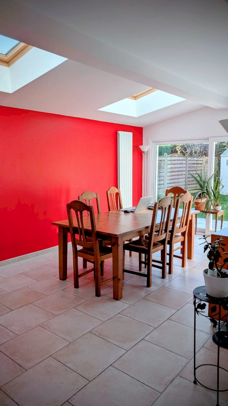 - Rez-de-chaussée : Cuisine équipée, salle à manger (18 m²), salon avec insert (27 m²), buanderie, WC.